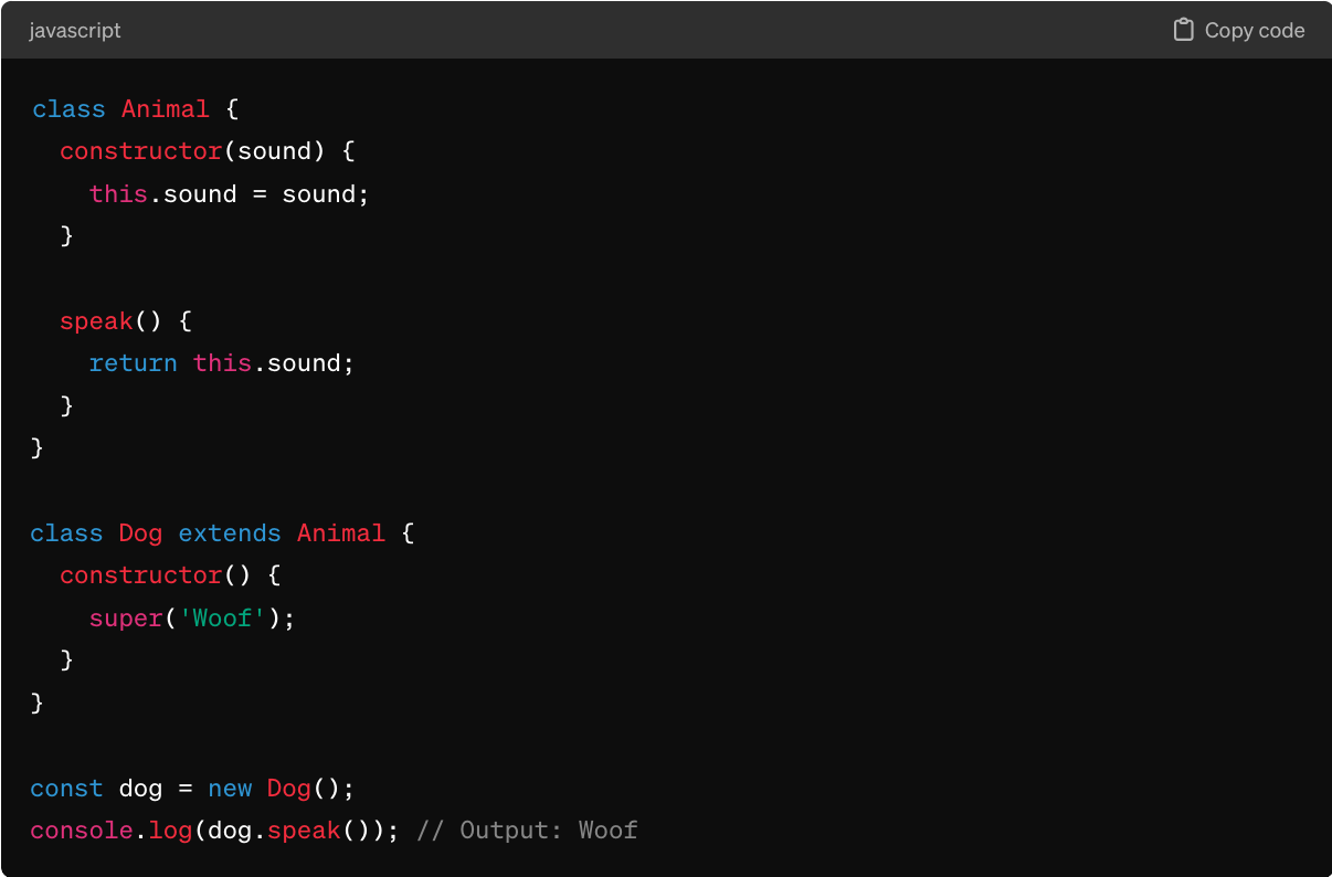 Inheritance: Understanding inheritance in JavaScript classes, where one class can inherit properties and methods from another class using the