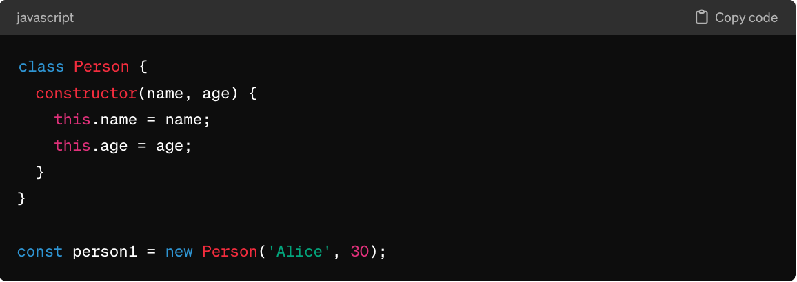 keyword, defining properties and methods within the class body.Constructor Method: Understanding the constructor method, which is a special method used for initializing instances of a class with initial values.